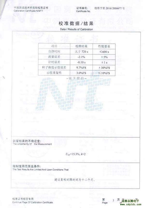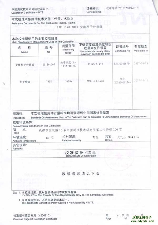 成都永騰電子塵埃粒子計數器檢驗報告